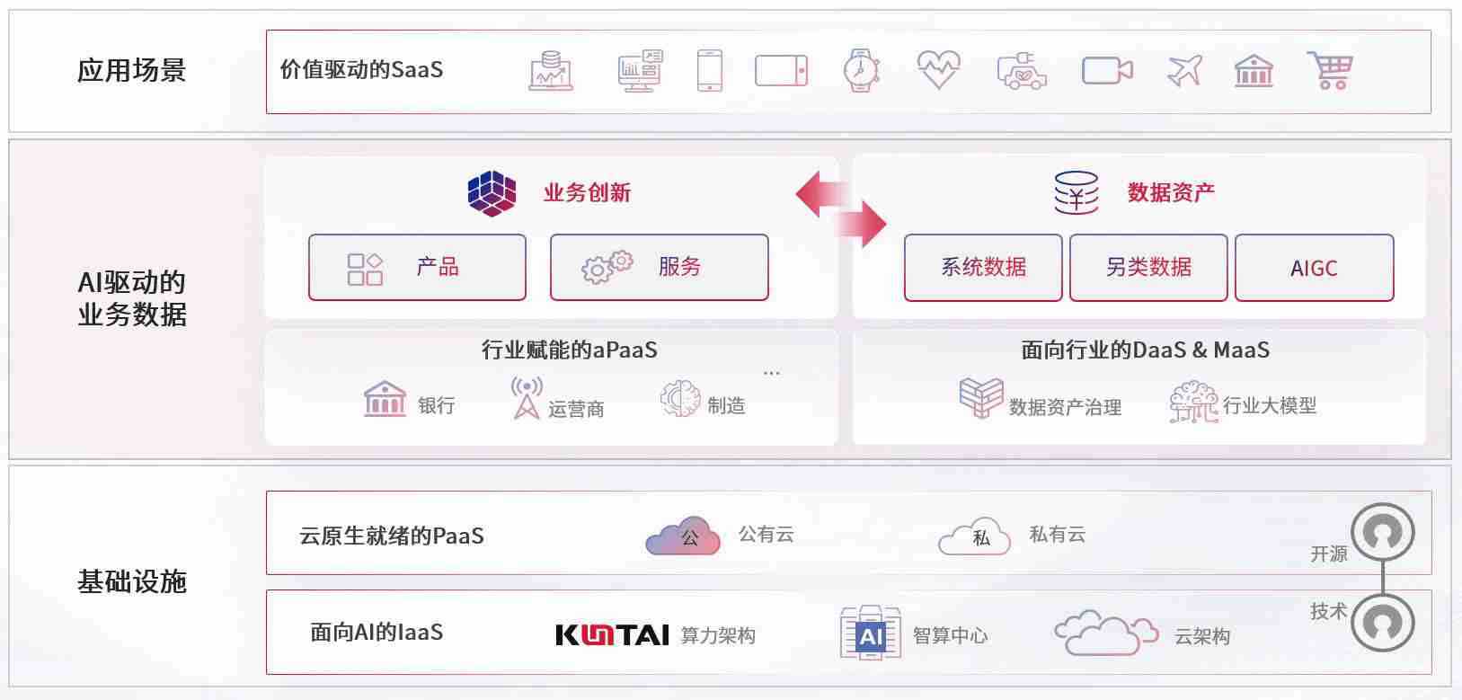 数字时代,,,围绕企业数字化转型的关键要素,,,,尊龙集团数码开创性的提出数云融合战略和技术体系框架,,,着力在云原生、、数字原生、、、AI原生和信创产业上架构产品和服务能力,,,,为处在不同数字化转型阶段的快消零售、、、汽车、、、、金融、、、、医疗、、政企、、、教育、、、、运营商等行业客户提供泛在的敏捷IT能力和融合的数据驱动能力,,,构建跨界融合创新的数字业务场景和新业务模式,,,助力企业级客户建立面向未来的核心能力和竞争优势,,,全面推动社会的数字化、、智能化转型升级。。