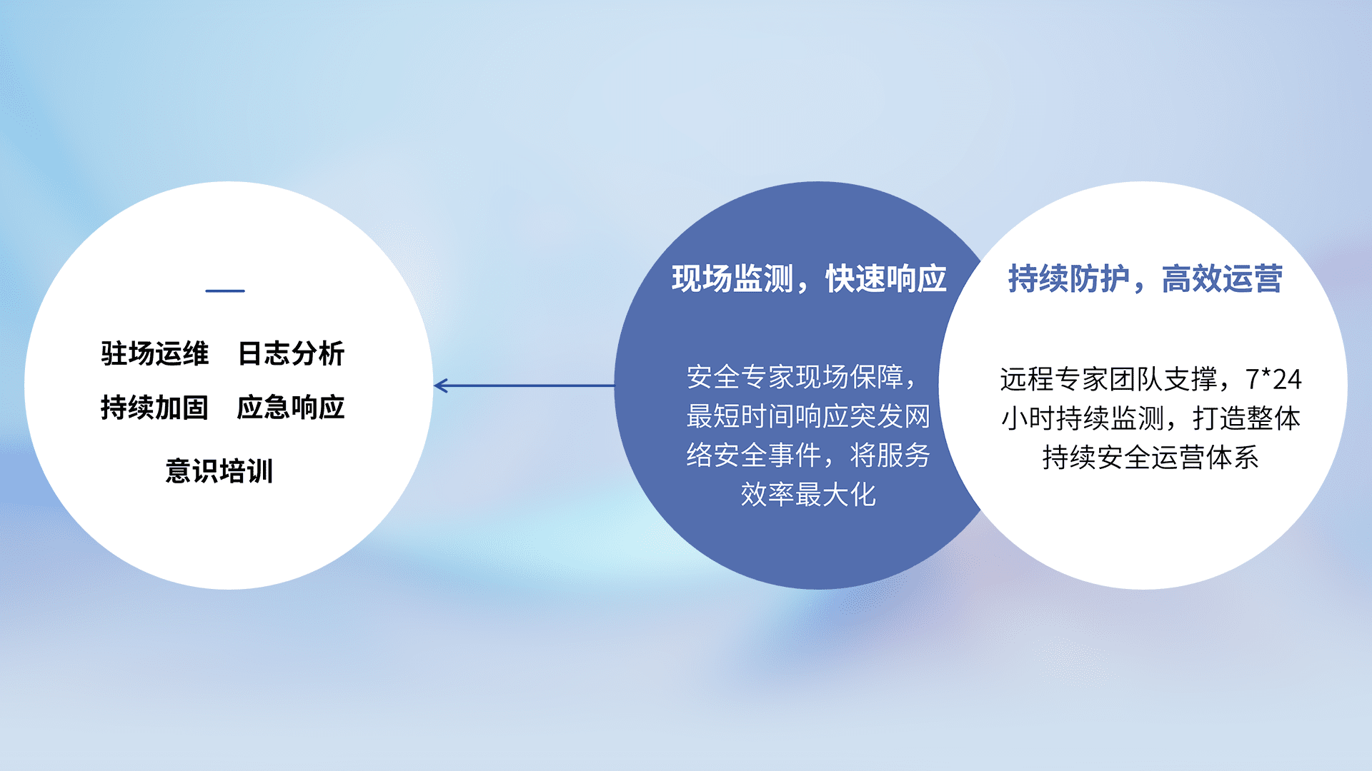 针对客户行业特性,,提供专属的一站式安全管理服务,,,帮助客户全面感知网络空间威胁,,通过安全专家的线上、、、线下防护支持,,,,实现风险闭环,,将安全保障常态化,,为客户打造常态化安全运维运营服务。。。。
